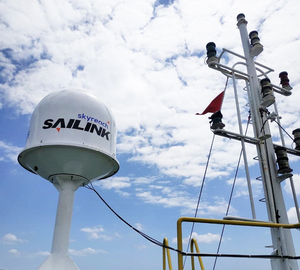 Skyreach dalam proses instalasi antenna SAILINK di kapal PT PELNI (Persero)